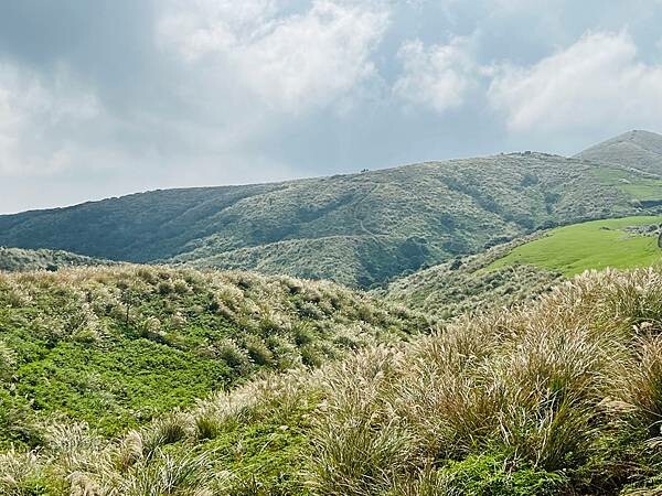 抵達目的地,先前往擎天崗大草原賞芒花,應該是晚來了,芒花凋謝了。之前的台北天氣都是陰濕的,一放晴,天氣好好,很多人就出來野餐走步道踏青了