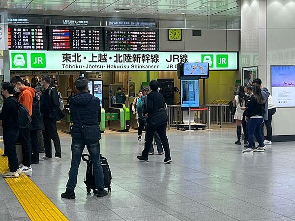 抵達東京車站,要找好JR🧵往東北、上越、北陸新幹線的入口。跟著就是要對好自己預定好位子的班車號碼、時間跟月台,然後在出發時間前大約10分鐘去到月台的車廂號碼前等候就可以了