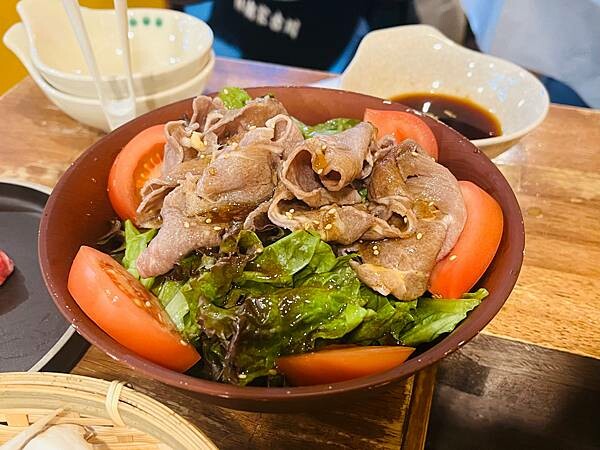 點了一人套餐再加點一份蔬菜盤跟羊肉排以及一杯蘋果酒(另一杯是套餐附送的),這一餐兩個人大約是5300日圓