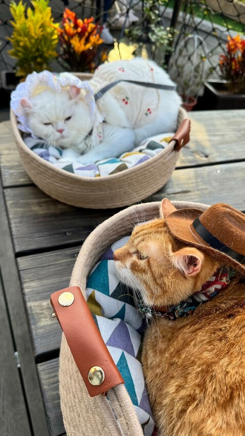所以我都會自己帶毯子或是籃子讓他們躺在上面~