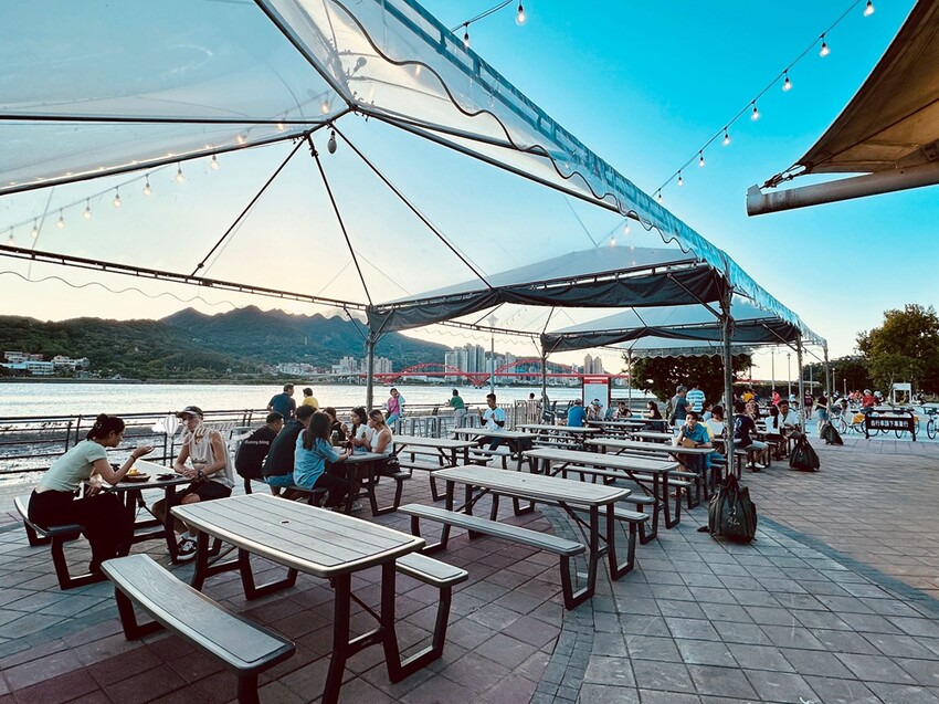 河岸邊的氣氛很適合來一杯,搭配串燒剛剛好。