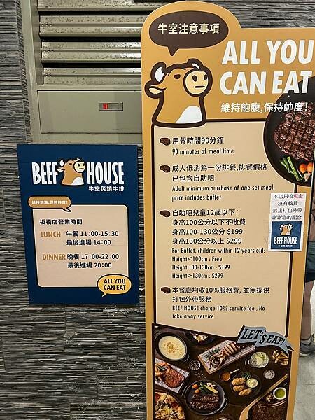 牛室炙燒牛排BEEF HOUSE有多家分店,這次來到板橋府中店,店內除了多種牛排、排餐可以選擇以外,最據特色的就是副餐自助吧的部份!除了常見的生菜沙拉、湯品、飲品以外,還提供超多樣的台式熱食、多種口味的披薩、還有多種水果點心!重點是都還很好吃!!