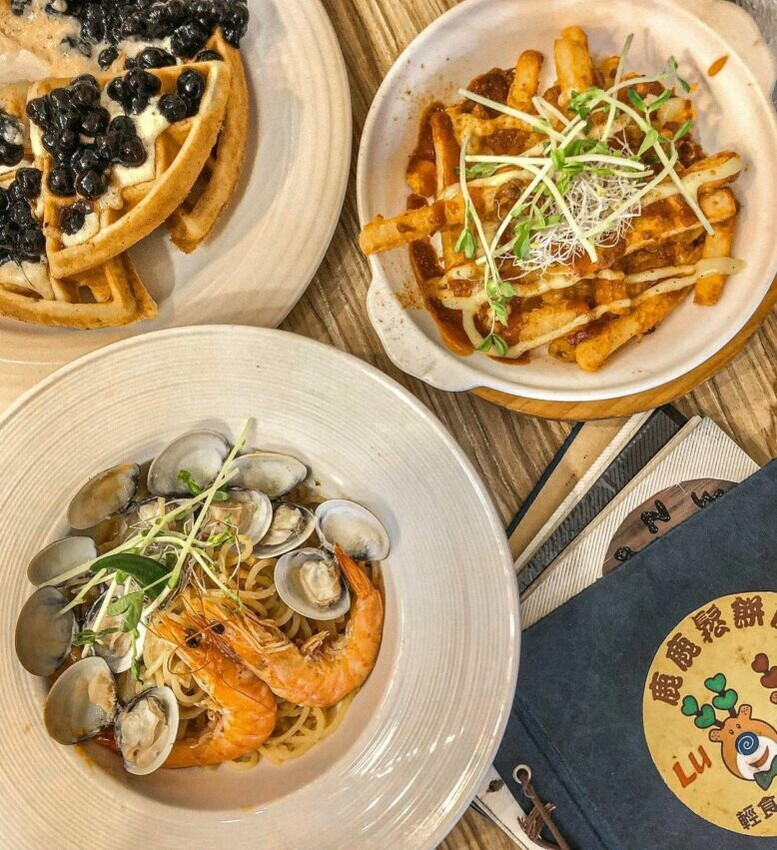 雖然店名叫做「鹿鹿鬆餅屋」,但除了鬆餅之外還有義大利麵、丼飯、簡餐等等,超多張手寫的自製菜單提供多樣的餐點可以選擇。尤其是許多別的地方吃不到的特殊創意料理,光是珍奶鬆餅不夠看,還有珍奶義大利麵、珍奶蛋包飯、珍珠奶茶火鍋等等,喜歡挑戰跟冒險的朋友當然不能錯過!