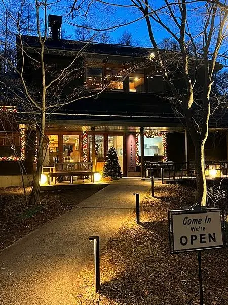 這天的行程也是徒步方式,如果是住宿在beb5的房客,可以在指定的時間搭乘星野渡假村範圍內的接駁車前往石之教堂、高原教堂、榆樹街小鎮。公主要出門的時候剛好接駁車開走了,需要再等20分鐘才有下一班接駁車,所以就直接走路去榆樹街小鎮。在小鎮上的川上庵先吃一個蕎麥麵午餐,之後就走去石之教堂以及高原教堂,午茶的時候在榆樹街小鎮的丸山珈琲小坐休息,跟著傍晚時分又再一次走去高原教堂看看聖誕點燈後的美麗教堂