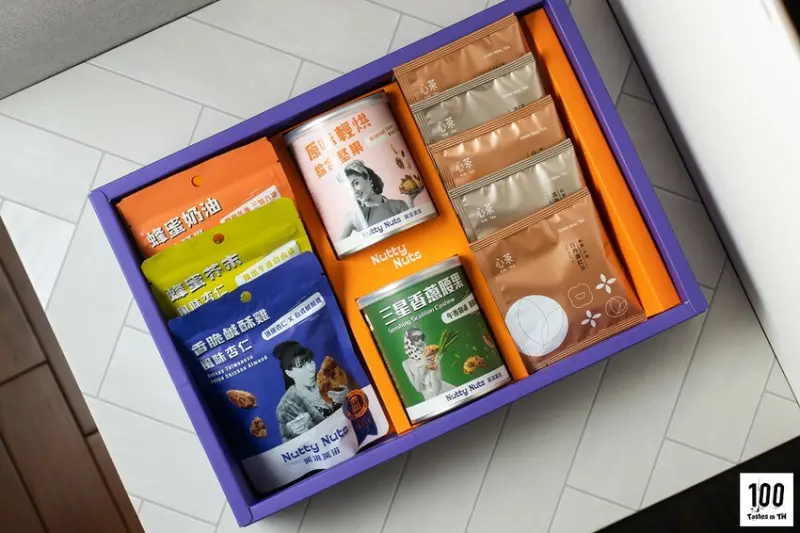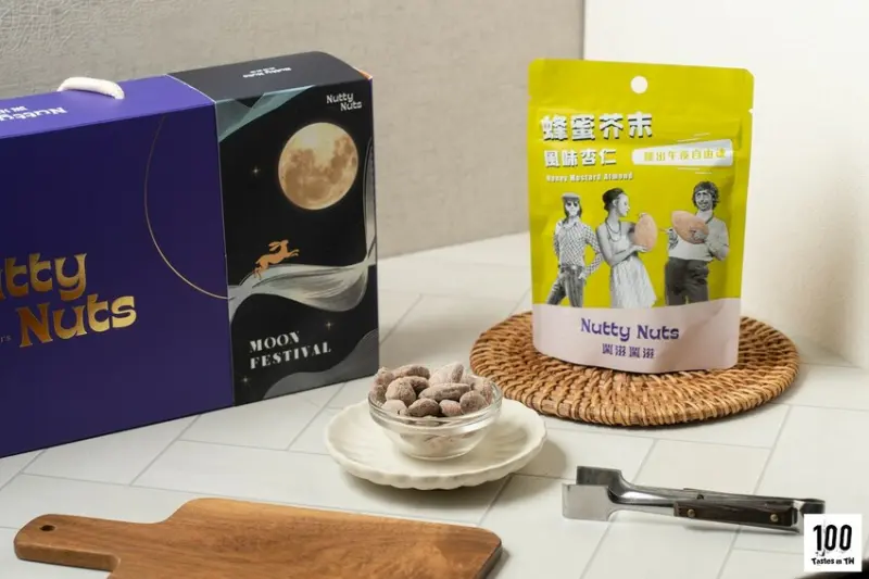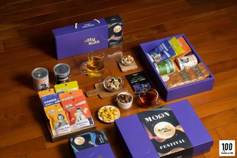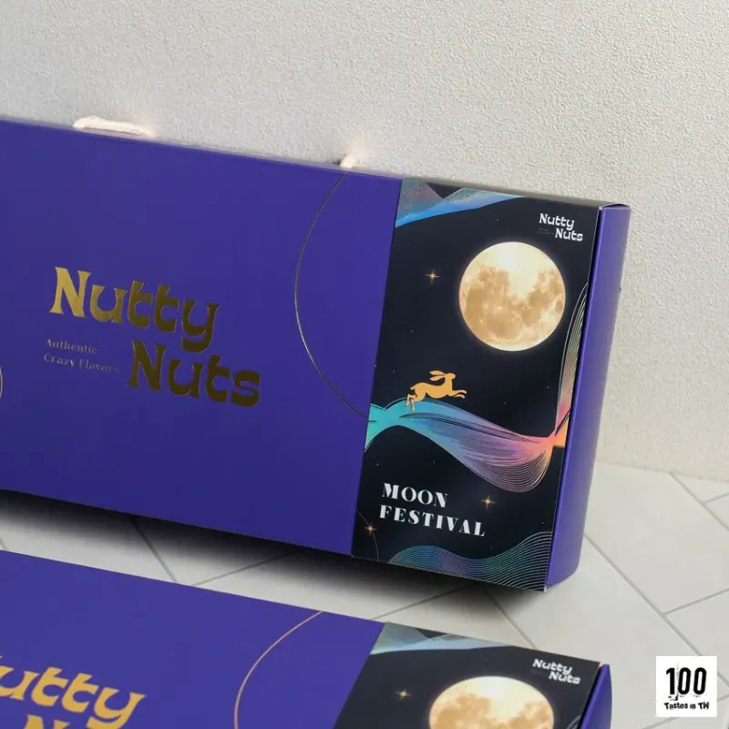 太「鬧」啦!開箱瘋狂堅果宇宙!Nutty Nuts 鬧滋鬧滋主打各式創意堅果,從堅果、腰果、杏仁到夏威夷豆都能玩出新花樣!今年中秋推出2024《皓月韶光》系列禮盒,撞色設計、深紫色盒身,配上燙金腰封質感滿滿,收到的人都直呼:「這個有喔!」