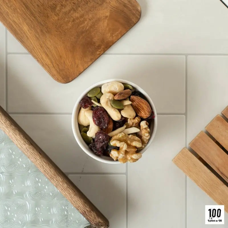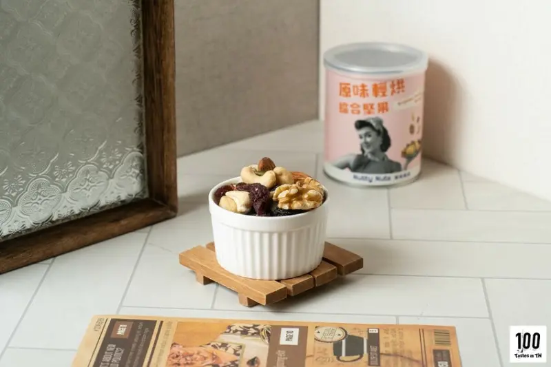 他們家的「原味輕烘堅果系列」有綜合堅果、腰果、杏仁、夏威夷果等,其中綜合堅果內含腰果、杏仁果、核桃、夏威夷果、南瓜子、杏仁條、葡萄乾、蔓越莓,多種口味一罐滿足。