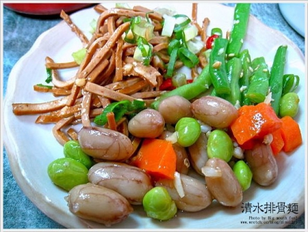這是涼拌小菜(免費的呦),在夏天裡先吃點涼拌小菜,微辣風味正好幫我們開胃,