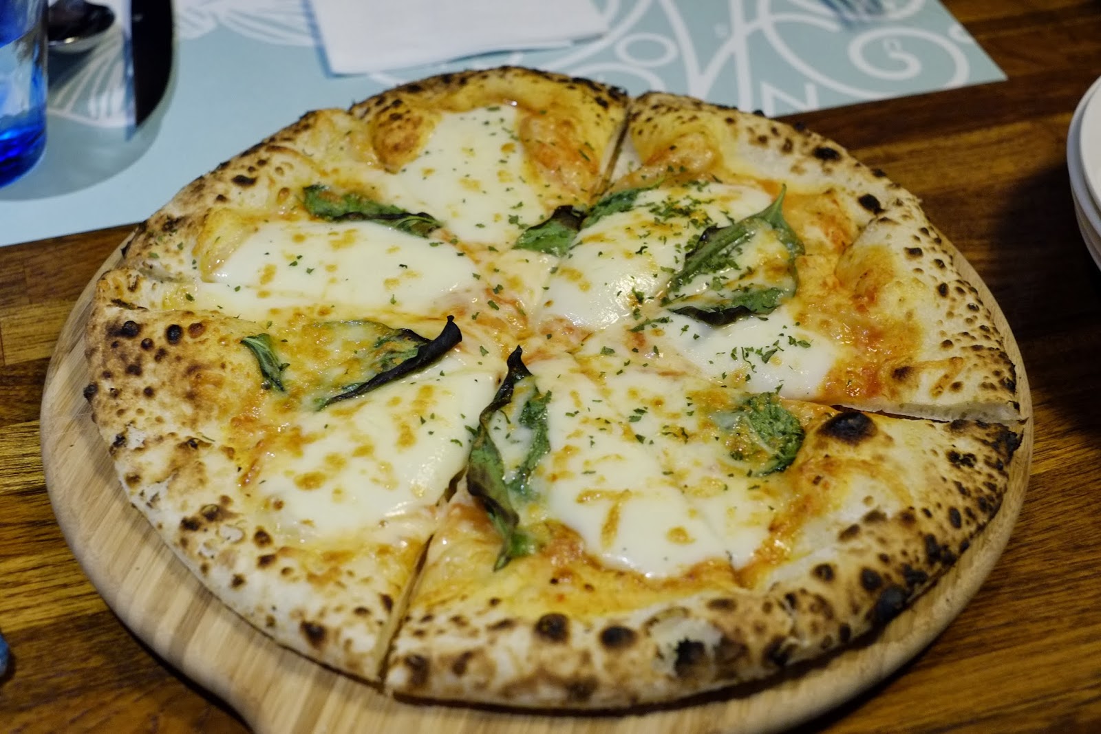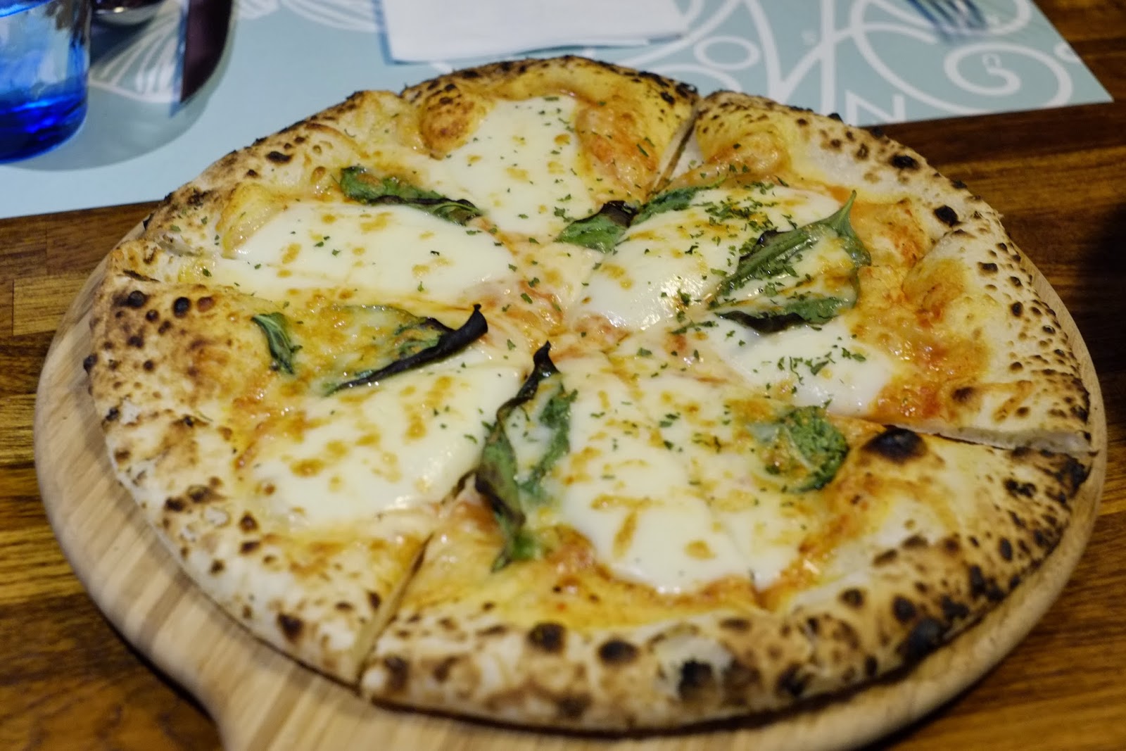 瑪格利特披薩,除了起司,蕃茄,上面還有羅勒葉點綴,但是蕃茄讓人一直想逃。