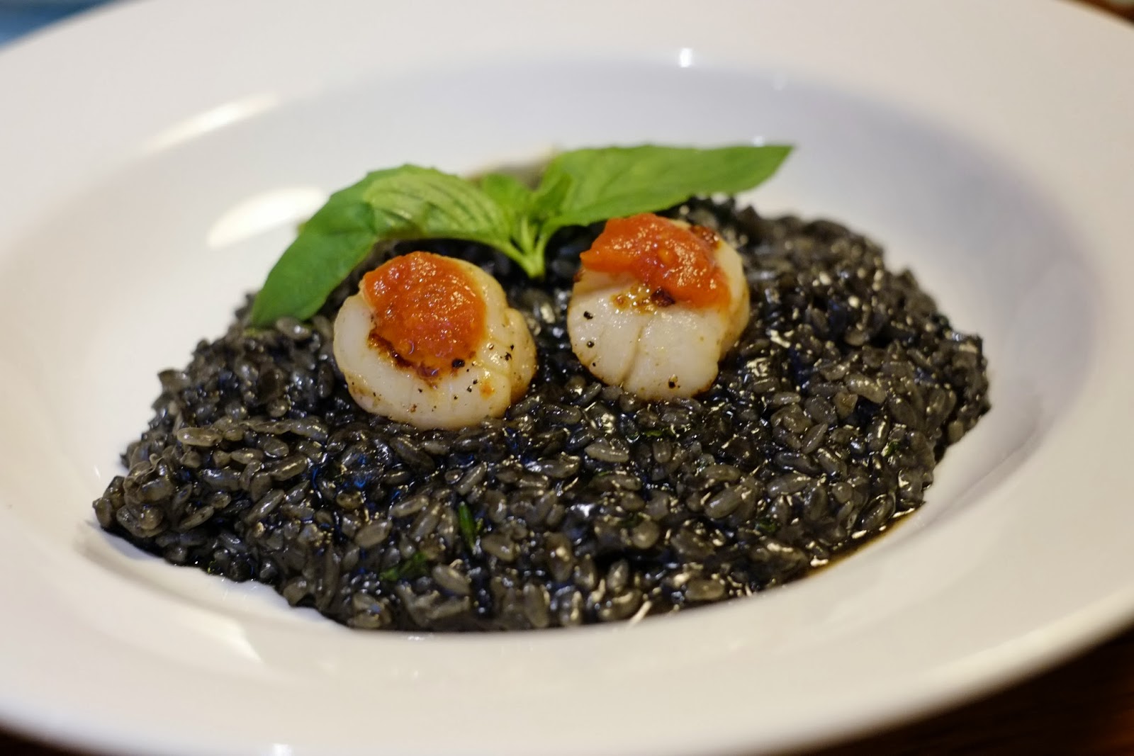 香煎干貝墨魚汁燉飯,很簡單兩個干貝加上墨魚汁燉飯,menu有寫杏鮑菇但在吃是沒感受到。醬汁充分包裹米飯,香味也很夠,干貝沒有煎到全熟,能吃到一點甜味。飯燉得很爛,沒有意大米那種米心微硬的口感倒是可惜了,不過改良的口感是大多數人能接受,另一個可惜就是份量不夠多。