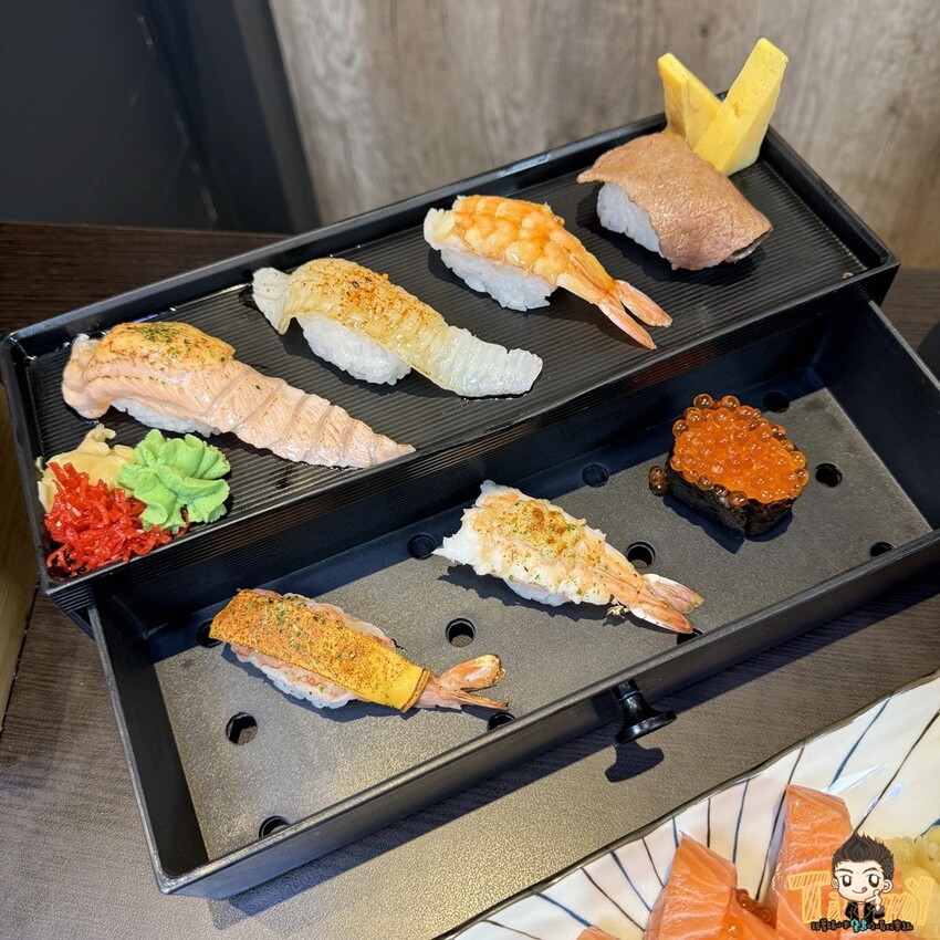 馬的抽屜握壽司(380元)使用抽屜式的餐盒承裝很有儀式感