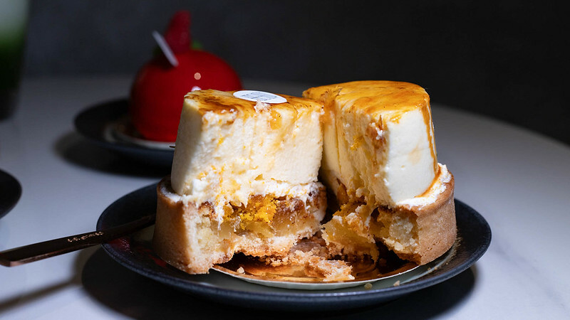 第一層是奶香濃厚布丁口感綿密X金色帶著脆脆焦糖,第二層,竟然吃到烏魚子,海洋系鹹香與蘋果結合再一起,從一開始的脆一路吃到塔體區讓人大呼滿足(甜點份量-巨沉)