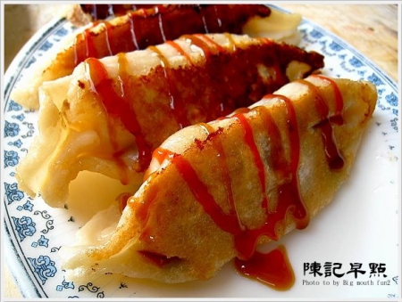 煎餃,看到這番大小的煎餃,讓我忍不住要拿來跟附近「翡翠麵館」的大鍋貼比較一番,