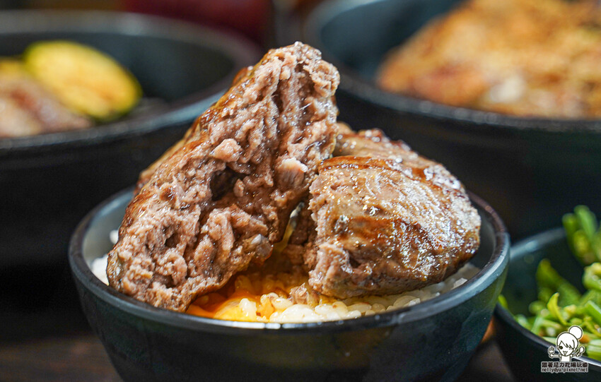 保有漢堡肉本身的肉汁,瀰漫出炭燒香氣提味,白飯殺手美食