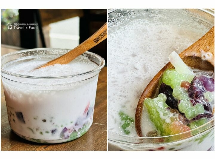 孩子的爹說,既然來了就什麼都要嚐嚐,於是霸氣的點了C套餐,內容包括椰子凍、馬打滾2顆、乳扇生乳酪、香蘭蛋糕、糯米芭蕉粽以及二杯飲料。