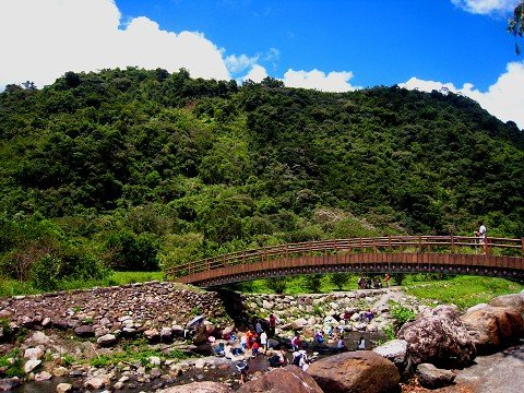 走在以繩索製成的吊橋上,需緩步向前走,些許的搖晃增添了趣味性,往下一看即可見清澈的溪流。