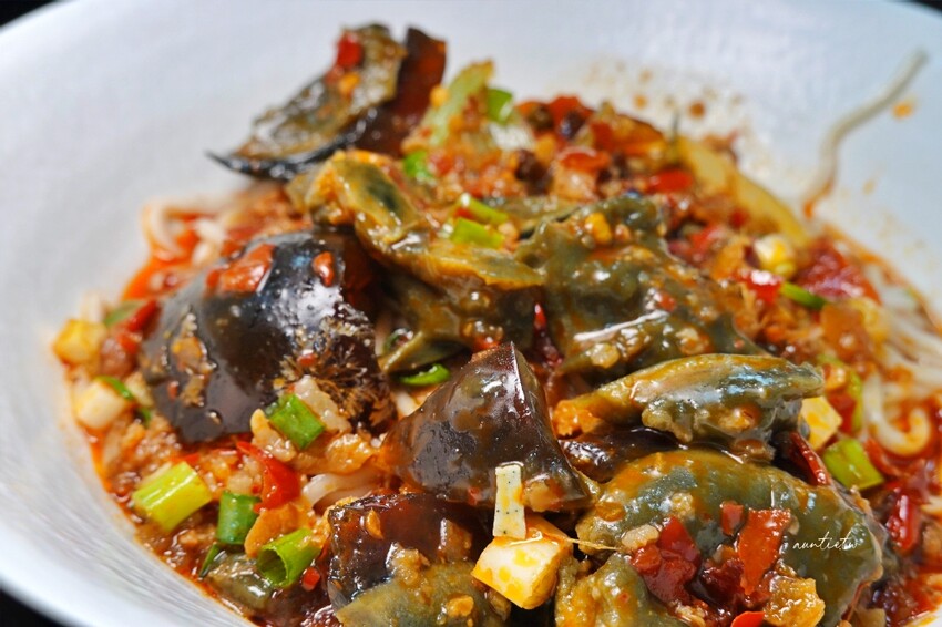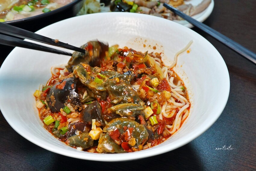 辣度可以選擇,點了中辣的辣度還真的蠻辣的,吃起來是椒麻口味,不只辣,還很麻!麵的口感很Q,皮蛋給的不少,有點後悔點中辣,對我來說有點太麻太辣,反倒吃不太出來皮蛋的香氣,如果是微辣、小辣,一定會更香更好吃。