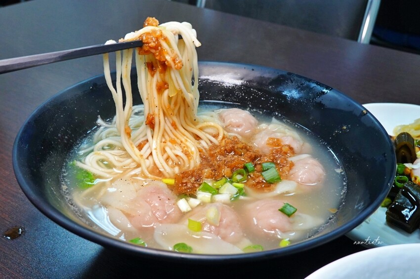 湯頭加了肉燥,喝起來還蠻香的,餛飩肉餡很飽滿,不過肉腥味有點重,單吃湯麵可以。