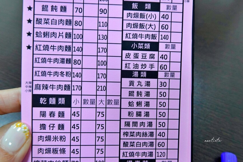 麵食種類不少,想吃飯的有肉燥飯跟燉牛肉飯,其餘都是麵食跟湯類。