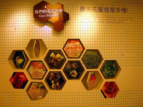 看完影片介紹後,我們到了室內展覽區,展覽區內以可愛造型的蜜蜂及蜂窩模型,將館內佈置得很活潑,讓小朋友們不會感到枯燥乏味。