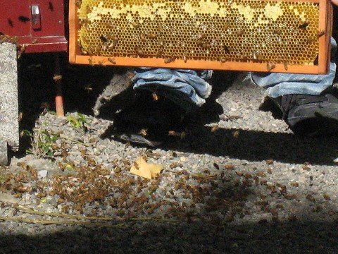 近距離的接觸,讓大家觀看蜜蜂群聚的現象。