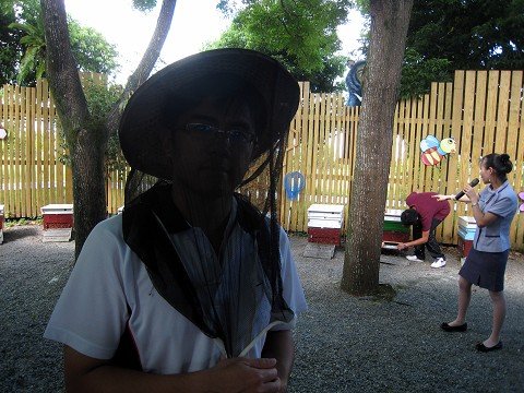 在「蜜蜂生態區」內需配合館方人員指示,載上防護網帽,每個人載上這頂網帽後都搖身一變成「藏鏡人」了^^