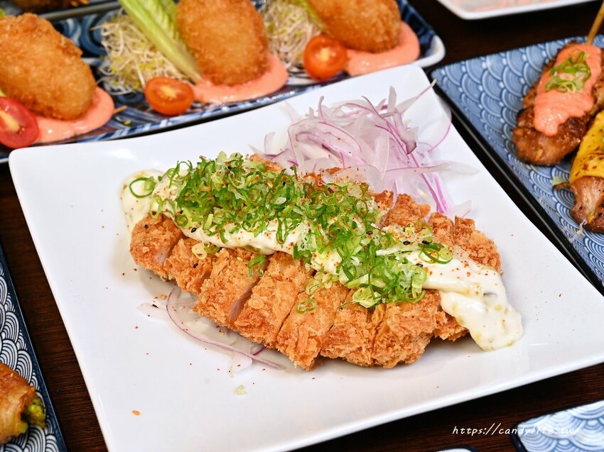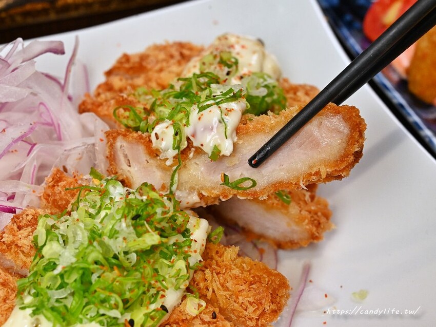 採用溫體豬里肌肉,加上蘋果、鳳梨等食材下去醃製讓肉質更加軟嫩,接著裹上麵包粉下去炸至金黃酥脆,搭配塔塔醬,口感紮實不乾柴,佐上塔塔醬及滿滿蔥花,好吃不油膩