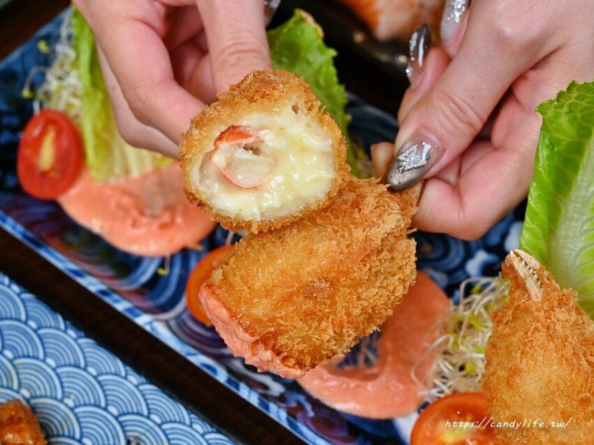 超可愛的奶油蟹肉可樂餅,一支是80元,採用奶油、馬鈴薯及蟹肉製成的可愛奶油蟹肉可樂餅,酥炸至金黃色澤,咬下去會大爆漿,搭配底下的明太子醬風味更讚