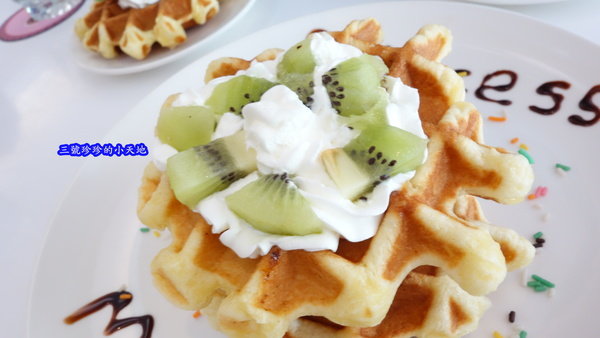 在吃了一口鬆餅之後,發現他們家的鬆餅不是一般我們在外面所吃到烈日鬆餅那種外層酥脆並帶有珍珠糖脆脆的口感。
