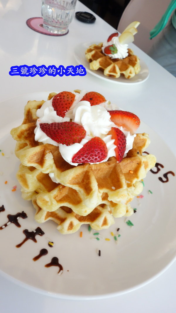 當時有詢問老闆娘說為什麼他們家的鬆餅吃起來跟我們平常在吃的烈日鬆餅不太一樣呀?比較沒有外層酥脆香甜的口感呢?老闆娘說他們家的鬆餅是屬於布魯塞爾鬆餅(比利時鬆餅有南北之分)且是將珍珠糖打碎後揉進麵糰裡。