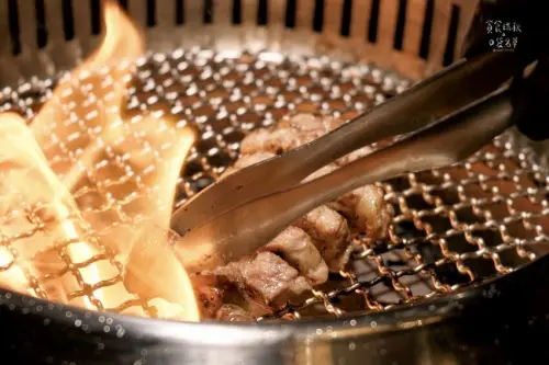 拿菜單給我們確認今晚要吃的套餐,然後各點了一杯啤酒,全程桌邊代烤的和牛燒肉就依序上菜囉,