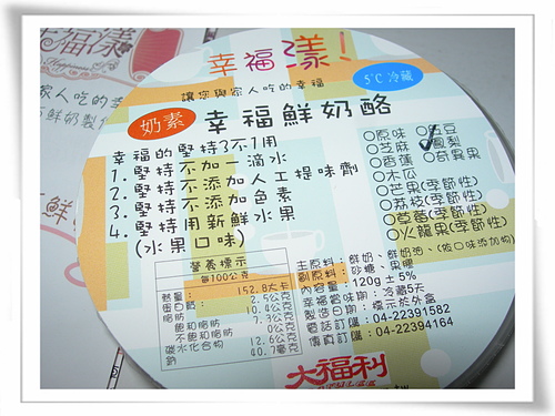 每盒鮮奶酪上都有一張標明產品資訊的紙卡,並註明奶素可食.