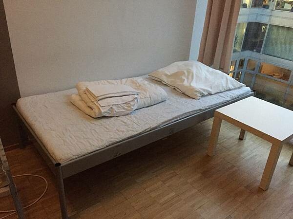 房間很乾淨,有置物櫃,另外,需要自己套床單以及枕頭