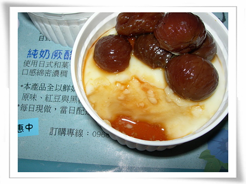 剛咬下去是QQ的,接著是綿密的口感在齒間滑動,與純奶厥酪一起吃,
