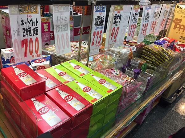 只要到了日本機場以及景點區,一定會看到 "Kitkat" 這款巧克力品牌的蹤跡,根據不同城市的特色,"Kitkat" 主打的口味也會不同。以大阪京都而言,主打 "抹茶"、 "玄米茶" 等口味,不僅價格親民,而且適合當作分送給同事的小點心,更是熬夜加班的最佳消夜