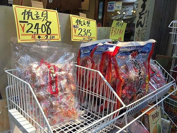 在黑門市場裡的越智本鋪,販售多種經典又便宜的大阪零食,其中,最知名的便是 "帆立貝",各式各樣、不同尺寸的帆立貝,不管怎麼看、會必如何換算,都比台北販售的帆立貝還要便宜