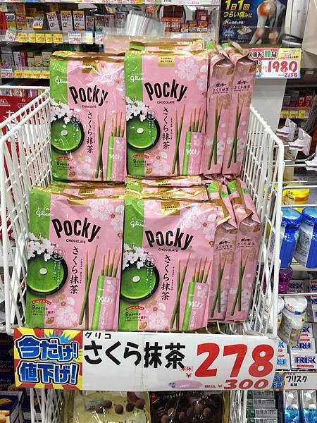 只要到了日本機場、通天閣等地,一定會看到 "Pocky" 這款餅乾棒品牌的蹤跡,根據季節的變化,"Pocky" 主打的口味也會不同。以春天而言,主打 "櫻花抹茶",只要在零食區看到一排粉紅色的餘光,不用懷疑,拿一包回台灣啃啃去