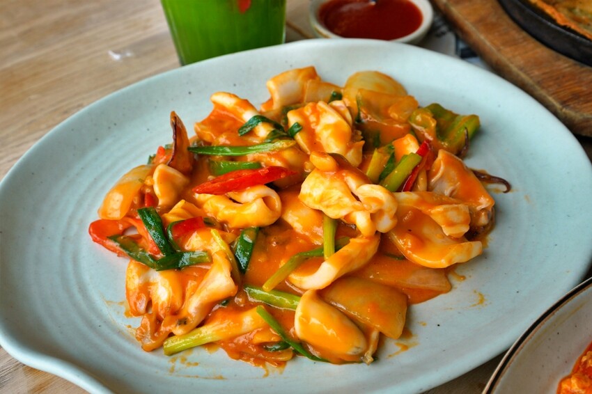 花枝的口感鮮嫩,而且份量非常足,其中還加了洋蔥跟蔥段,每一塊花枝都裹上滿滿的鹹蛋黃醬汁,口味上調整的很好,不會太鹹太膩,也是白飯殺手來著,光是口感就吃得出來花枝的新鮮度一百分。