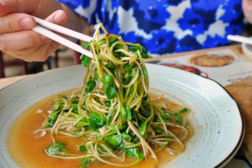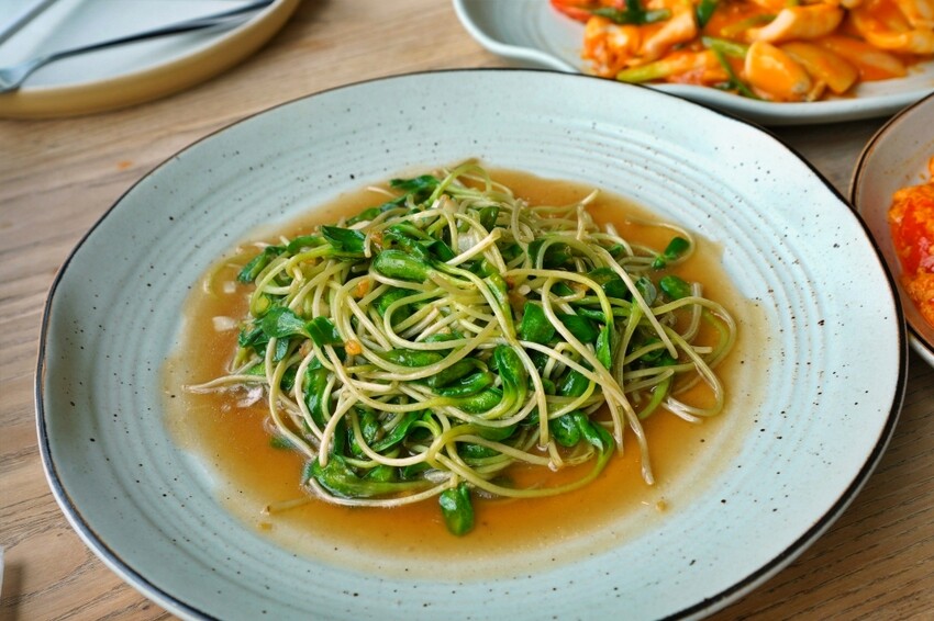 清炒向日葵芽,吃起來蠻像中式餐館中炒豆苗的味道,不過口感又更嫩、更軟一些,吃起來非常清爽,帶點熱炒過後的鍋氣香。