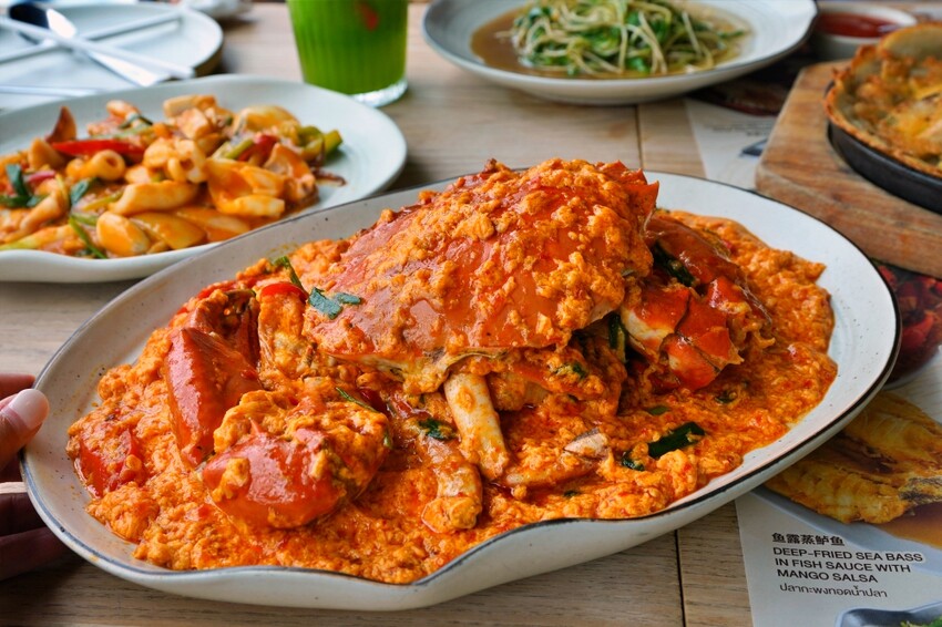 「Savoey上味泰餐館」的門口就擺著一大箱活蟹,看了下菜單上寫的是Mud Crab,青蟹蟳類的一種,什麼蟹種老實說不太知道,只知道吃了他們家螃蟹之後實在是太滿足,蟹肉超級飽滿,上桌時已經先將蟹殼都敲碎破殼了,再用附上的螃蟹剪跟蟹叉來挑蟹肉,每一口可以吃到滿滿的蟹肉,真的懶得動手剝殼的話也有「咖哩炒巨蟹肉」,這道就是已經剝好蟹殼的餐點,有老人家的話吃起來比較方便。雖然咖哩醬汁看起來好像很重鹹,吃起來卻出乎意料之外的清爽,滿滿蛋花與咖哩醬汁的結合,剝好的蟹肉弄碎加入滑蛋咖哩醬汁再放在白飯上,真的是太邪惡的組合。