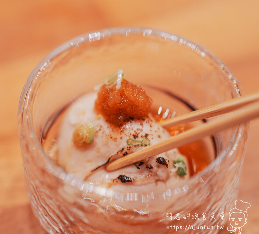 鮭魚白子口感滑順,處理得非常好,沒有任何腥味,入口即化,搭配辣蘿蔔泥和特製醬汁,清爽不膩口。