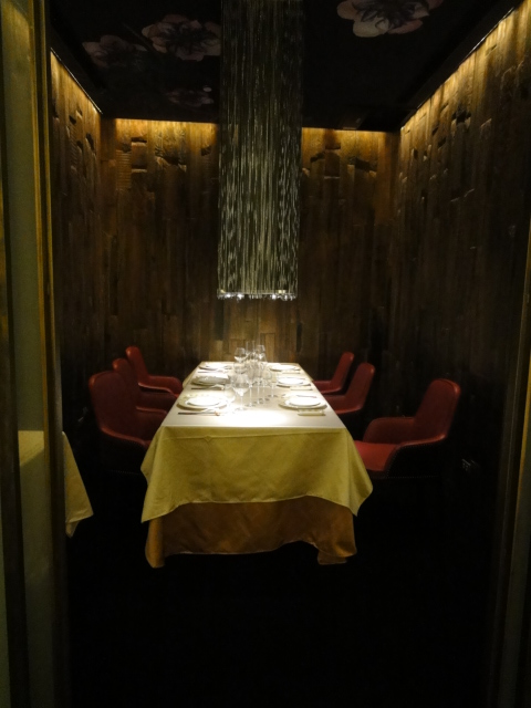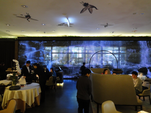 走進餐廳會被LED燈做的半透視瀑布給吸住目光