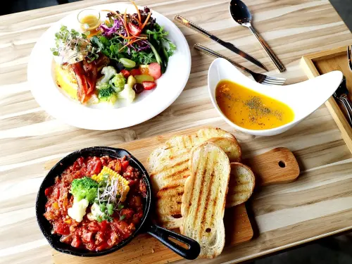 這裡的套餐有紫米飯或白飯,還有味噌湯、紅茶或咖啡,最特別的是可以選擇一個小蛋糕或加十元換成鬆餅,這樣一來不僅有主餐,還能享受甜點!雖然是健康便當,主餐都低脂高蛋白,搭配甜點也不會過於負擔,價格在東區這樣的競爭環境下也算合理,真的是性價比超高的選擇。