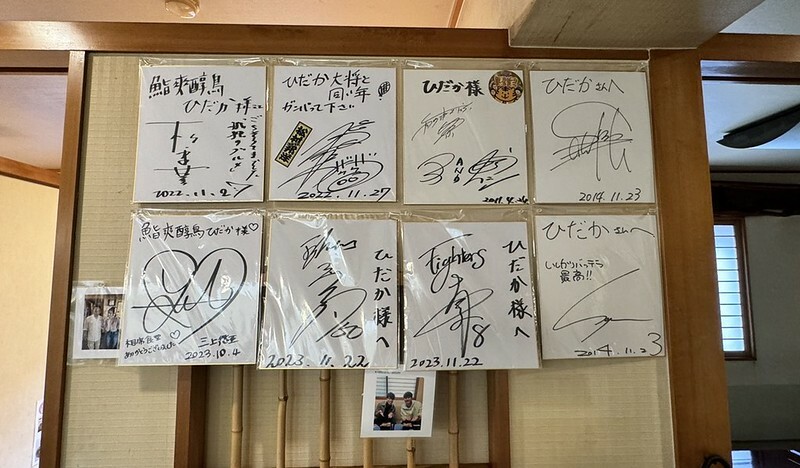 按照慣例坐下點完餐後,先找五郎的簽名,那是一整排,名店無誤。同樣的,日本人的簽名我一個也沒看明白....等等..有一個。