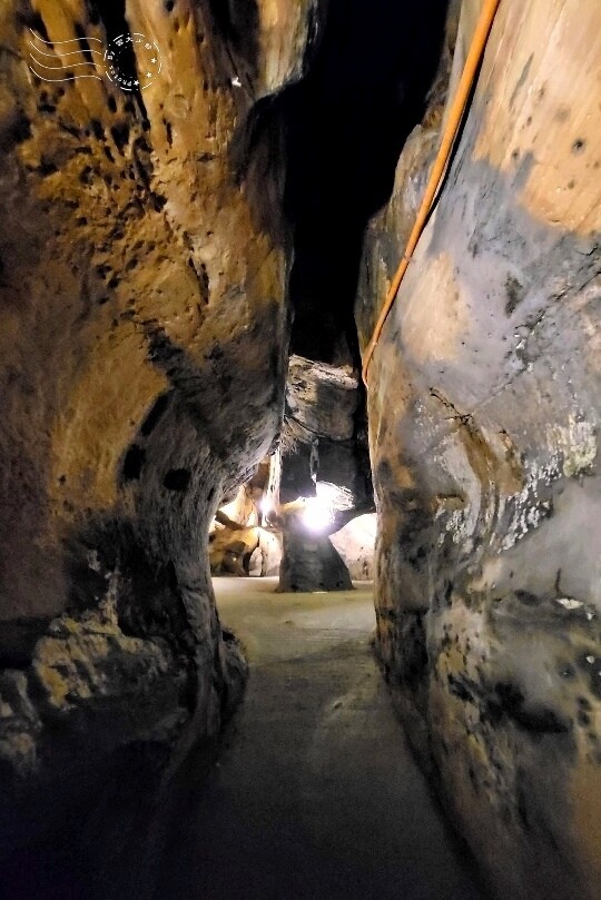 ↓有人說它像台版的土耳其地下城,但卡帕多奇亞的卡馬柯爾地下城我拜訪過,乃人工開鑿的低矮地下迷宮,非常乾燥通風。若說岩洞和迷宮這兩點,確實有那麼點類似,但佛手洞畢竟是從海底上升的天然洞穴,非常潮濕,感覺就大相逕庭了。