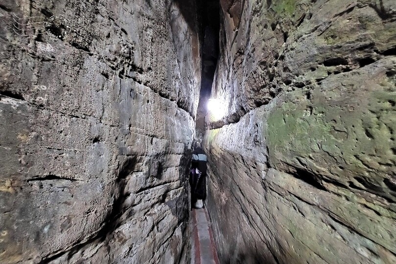 ↓精彩的來了——左洞,入口就在主洞神壇旁,俗稱的一線天——長80公尺,僅容一人通過的狹窄洞穴,也是網紅們相繼來仙洞巖拍攝的主要原因。