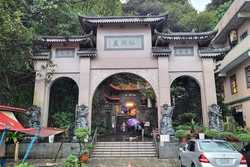 ↓時間已下午三點半,離仙洞巖謝絕香客的四點僅剩半小時。廟口因雨,顯得相當昏暗。