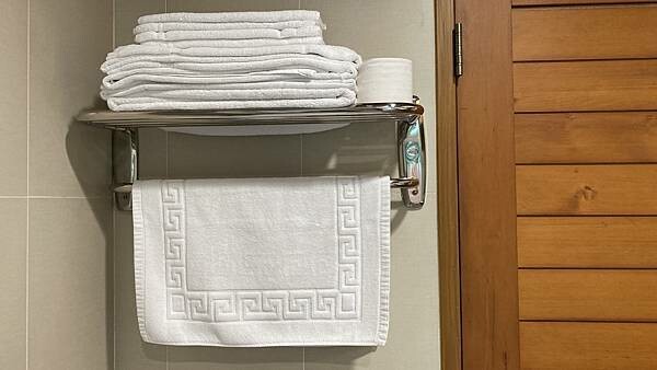 搭配上大面積洗臉鏡、置物檯面,提供兩台吹風機、漱口杯、沐浴乳、洗髮精、浴巾