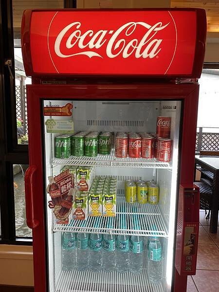 旁邊有飲料冰箱和零食、咖啡機可以自由享用