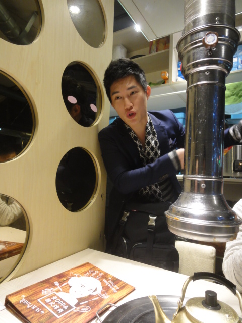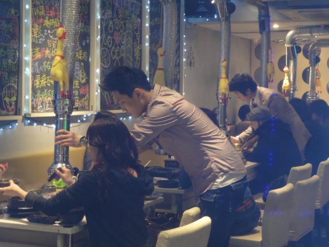 這間烤肉店是用圓筒型抽油煙機來吸烤肉的煙