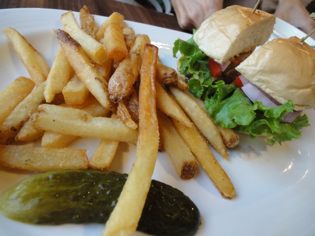 王子點的起司牛肉漢堡 250元~ 肉塊非常豪邁~裡頭也夾滿了生菜沙拉~ 吃一個就能很飽